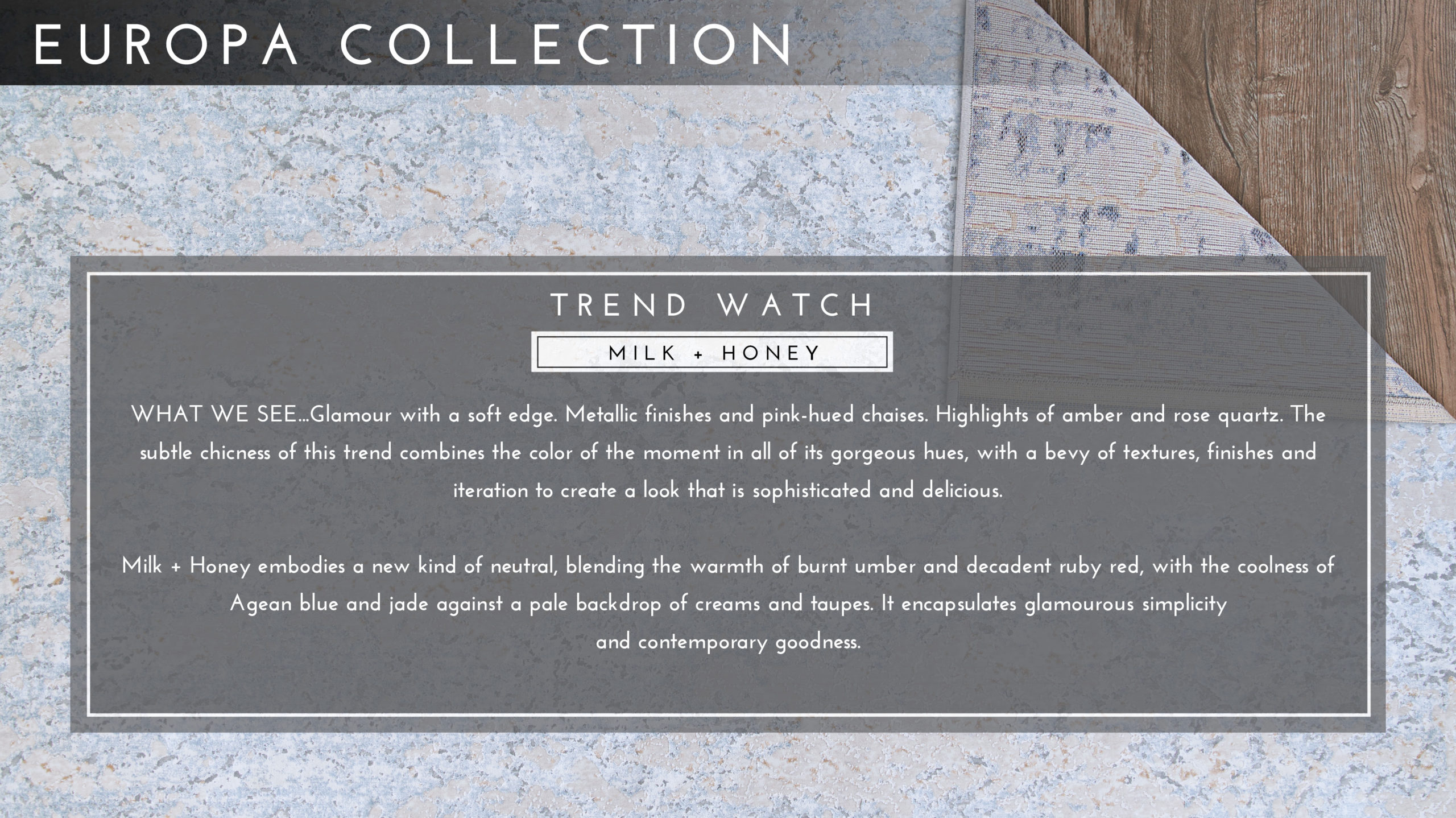 Inspired by the fascinating uniqueness of Jupiter’s moons, the Europa Collection is composed of cool toned area rugs with one-of-a-kind elegant abstract designs that are highlighted in poly-viscose. Face-to-face Wilton woven of 100% ultra-soft polyester. Each design has a subtle sheen and a high/low texture, offering an indulgent feel. With colorways like Mist, and Starlight, Europa gives off a sense of magical calmness and relaxation. This collection is perfect to come home to after a long busy day. Expertly power-loomed in Turkey, these fascinating floor coverings can be placed worry-free in high-traffic areas and are easy to clean. The beautiful distressed details of each area rug are sure to draw the eye and are able to seamlessly blend into any abode thanks to its neutral hues. Elegant and lavish, the Europa Collection will instantly adorn any setting with a modern and sophisticated appeal.