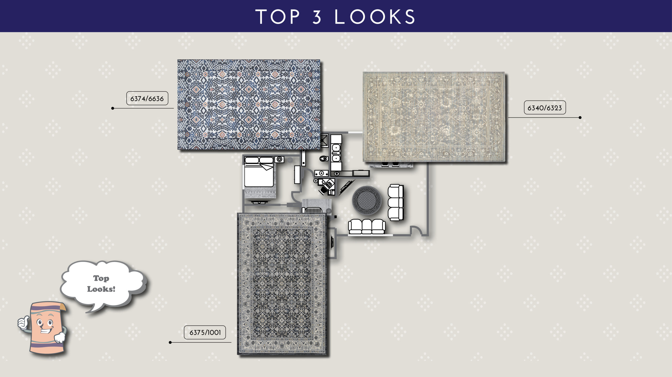 * Graphite, Geometrics and Retro Damask Designs are Loom-Carved with a Multi-Point Weaving Technique.