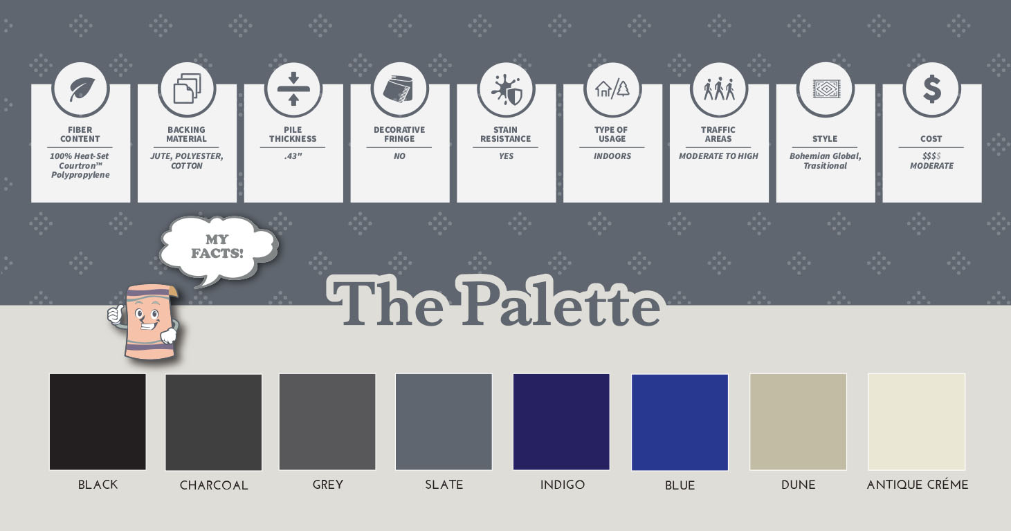These Persian-inspired area rugs create a beautifully romantic feel to traditional, as well as transitional room-settings. The collection’s rich, modern colorways and antique designs are truly a treasure woven for the floor. Try pairing these area rugs with dark or light wood for a traditional feel or leather furniture for a more transitional environment.
