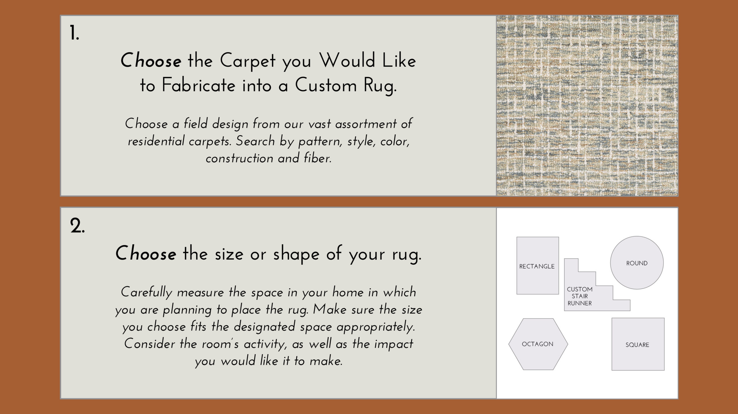 This Product can be fabricated into a Custom Size Rug. Available Finishing Options include, Wool Machine Serging, Wool Hand Serging, Synthetic Serging, Chenille Bindings, Cotton Fabric Bindings, Linen Bindings, Courtronâ„¢ Polypropylene Bindings and Synthetic Binding.