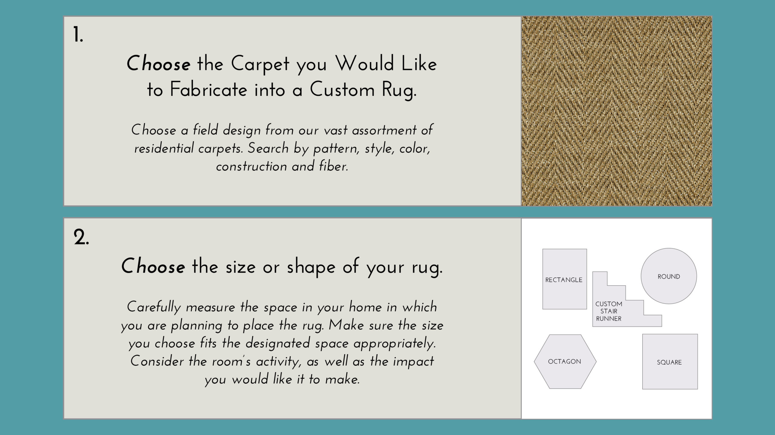 Please be sure to use our Custom Rug Calculator and Visualizer.